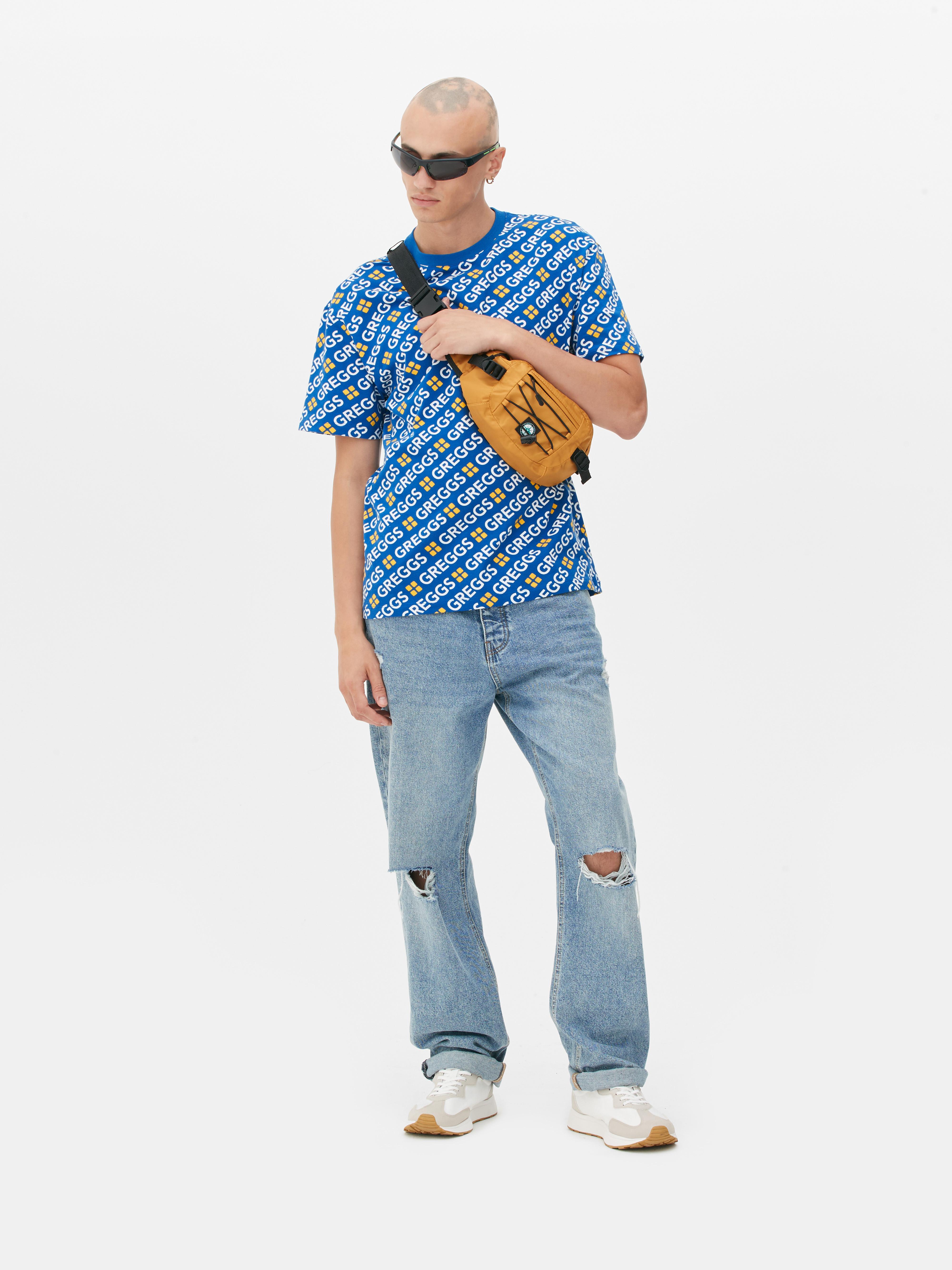 Greggs Blue Logo T-Shirt - 800. Primark shops ranging collection. Includes limited edition T-shirts socks trainers boxers tracksuits and hats. Men Mens Clothes Mens Tops.